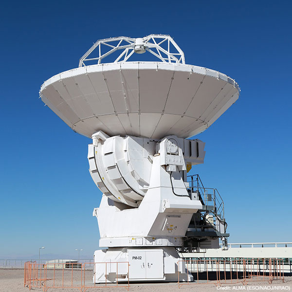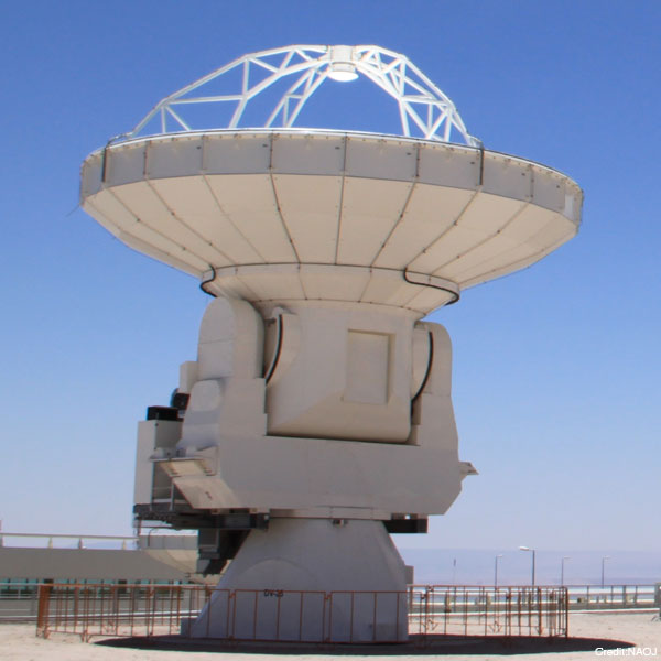 ALMA uses a system called an “interferometer” that arrays many small antennas across a wide area and links them together to operate as one huge telescope. By combining 54 parabolic antennas with 12 meter diameters and 12 parabolic antennas with diameters of 7 meters, ALMA creates one huge radio telescope consisting of 66 antennas in total.