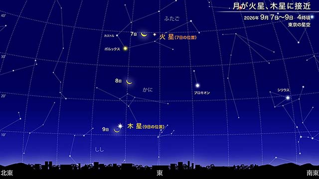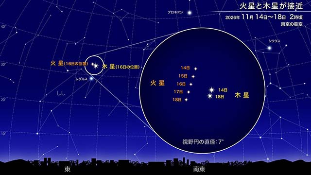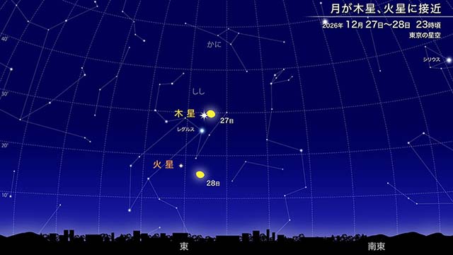 比較的観察しやすい星食としては、しし座の1等星レグルスが月に隠されるレグルス食が、1月7日と3月2日に九州の一部と沖縄を除く地域で見られます。