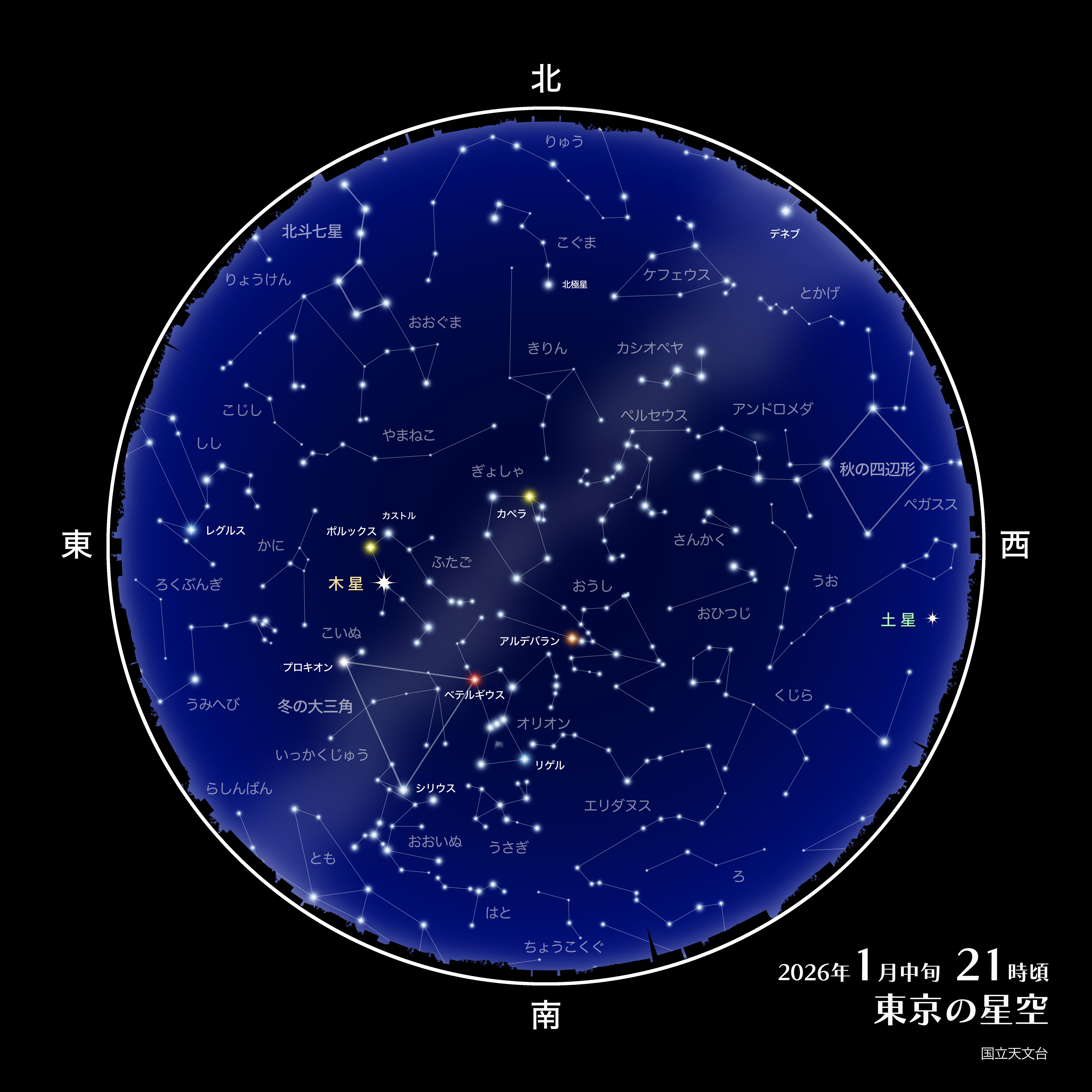 東京の星空・カレンダー・惑星(2026年1月)