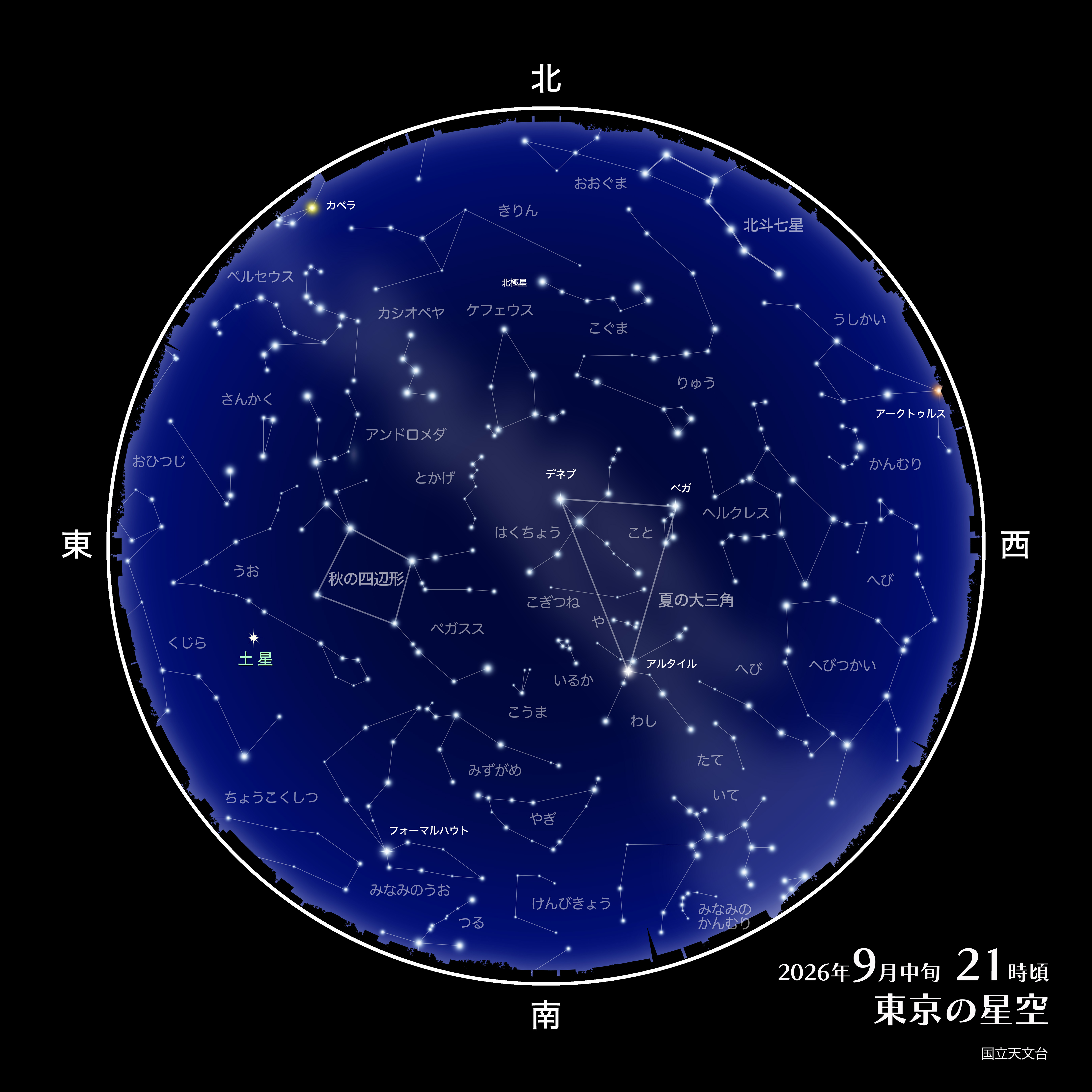 | 19日 | 上弦 / 金星が最大光度(マイナス4.8等) |