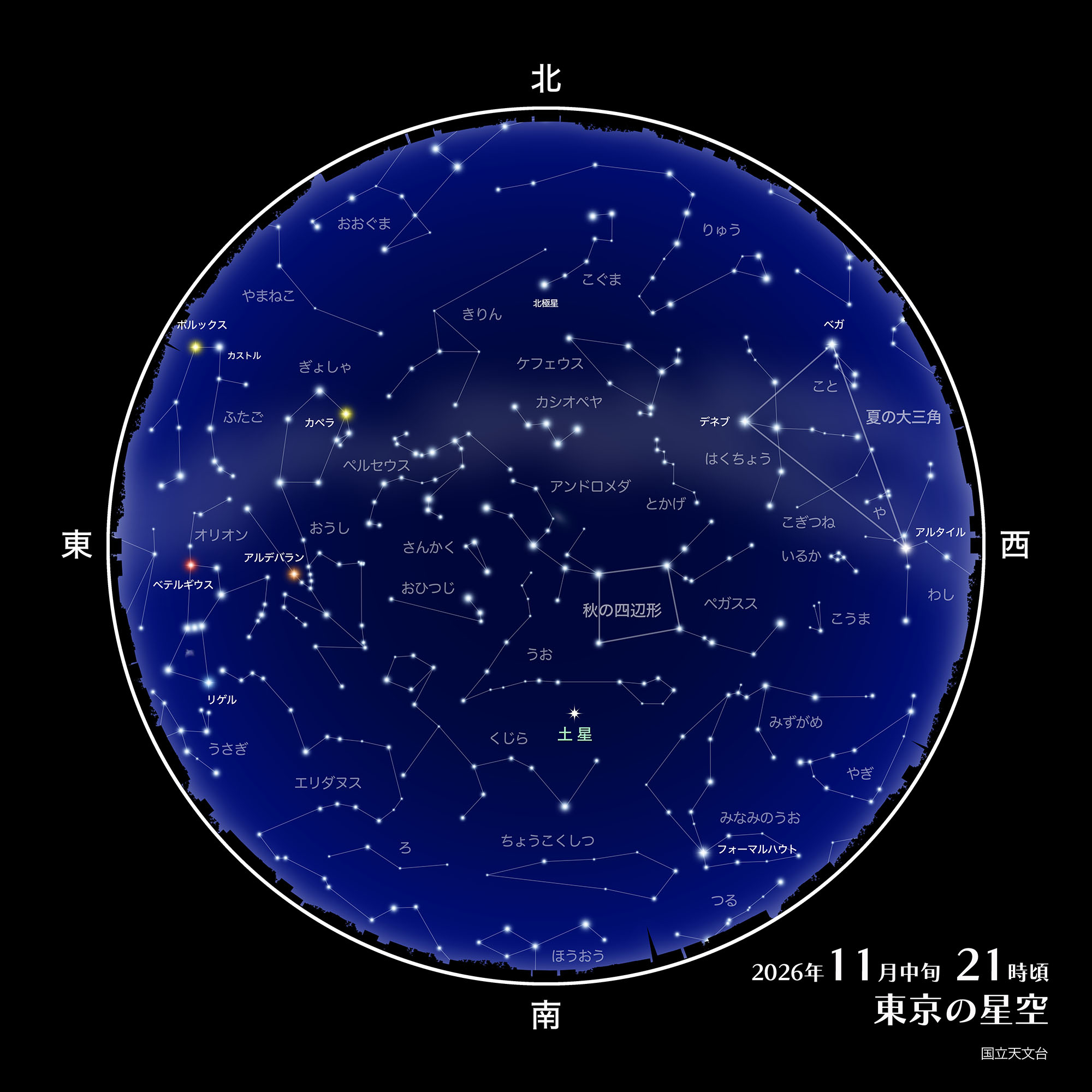 東京の星空・カレンダー・惑星(2026年11月)