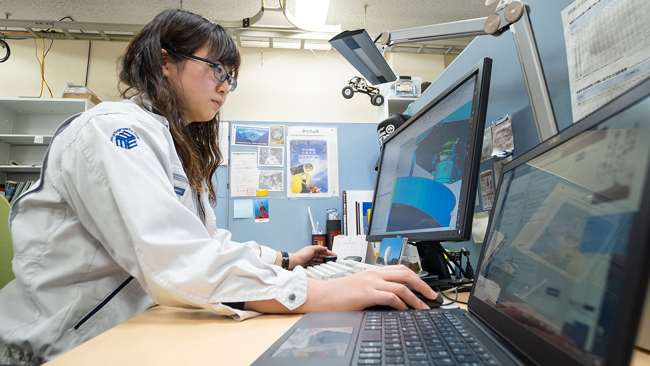I joined NAOJ back in April 2018, making this my third year. I spent the first two years training while engaged in designing and testing work through OJT (on-the-job training). My current duty is to first listen to design requests from NAOJ’s projects, such as TMT (Thirty Meter Telescope), KAGRA, and CLASP2; and then to design the requested products; create design drawings on a CAD system; place orders to produce them; and ultimately install the final products. I sometimes work from home when I’m mainly working on the computer.