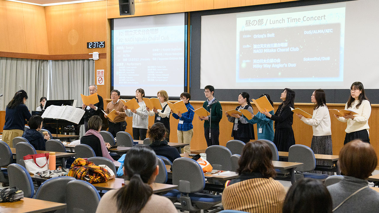 NAOJ’s choir club was created in 2018, and I have been a member and the head of the club since then. It started with 3 or 4 people, and we found someone in NAOJ to teach us, and then we quickly grew to about 20 people. In January of this year, there was a mini-concert at NAOJ, and the choir club also performed there. Our goal is for anyone to feel free to join us during their lunch break and have fun singing ....... If we work too hard for a recital, the atmosphere will change, so we aim to be a club where people who cannot make it to a recital can still feel free to participate in practice. I would also like to increase the number of members.