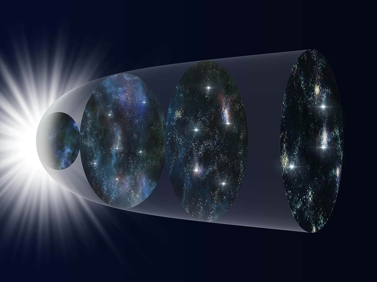 天文学者はこの結果から、天の川銀河が特別な存在ではないと気づきました。ちょっと想像すれば、全ての銀河がお互いに離れ続けるのならば、どの銀河から観測しても、他の皆が離れていくように見えることが理解できるでしょう。どの銀河も、自分は不動で他の皆が離れていくという状況を説明するために、天文学者たちは新たな考えを思いつきました。銀河が動いているのではなくて、銀河と銀河の間の宇宙空間が膨張しているのです。ハッブルの観測結果を説明するためには、宇宙空間全体が膨張していると考えるのが最も論理的です。