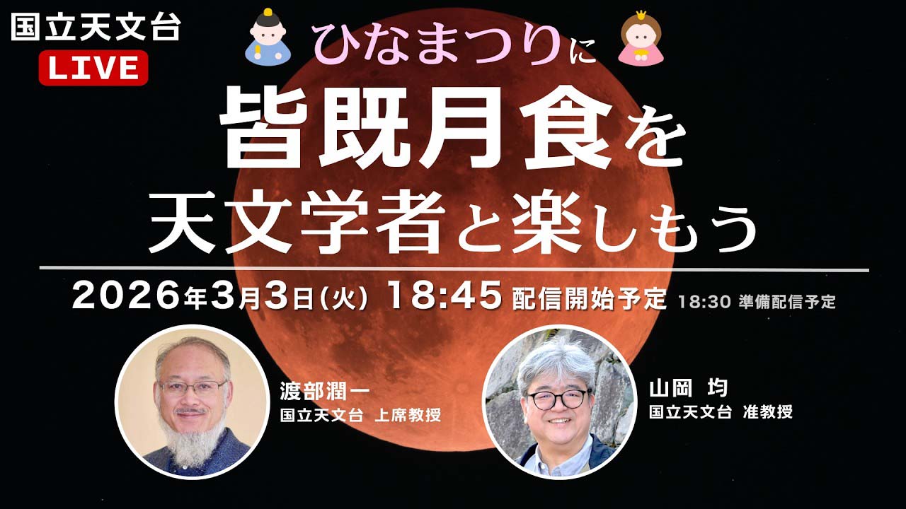 【国立天文台ライブ配信】ひなまつりに皆既月食天文学者と楽しもう