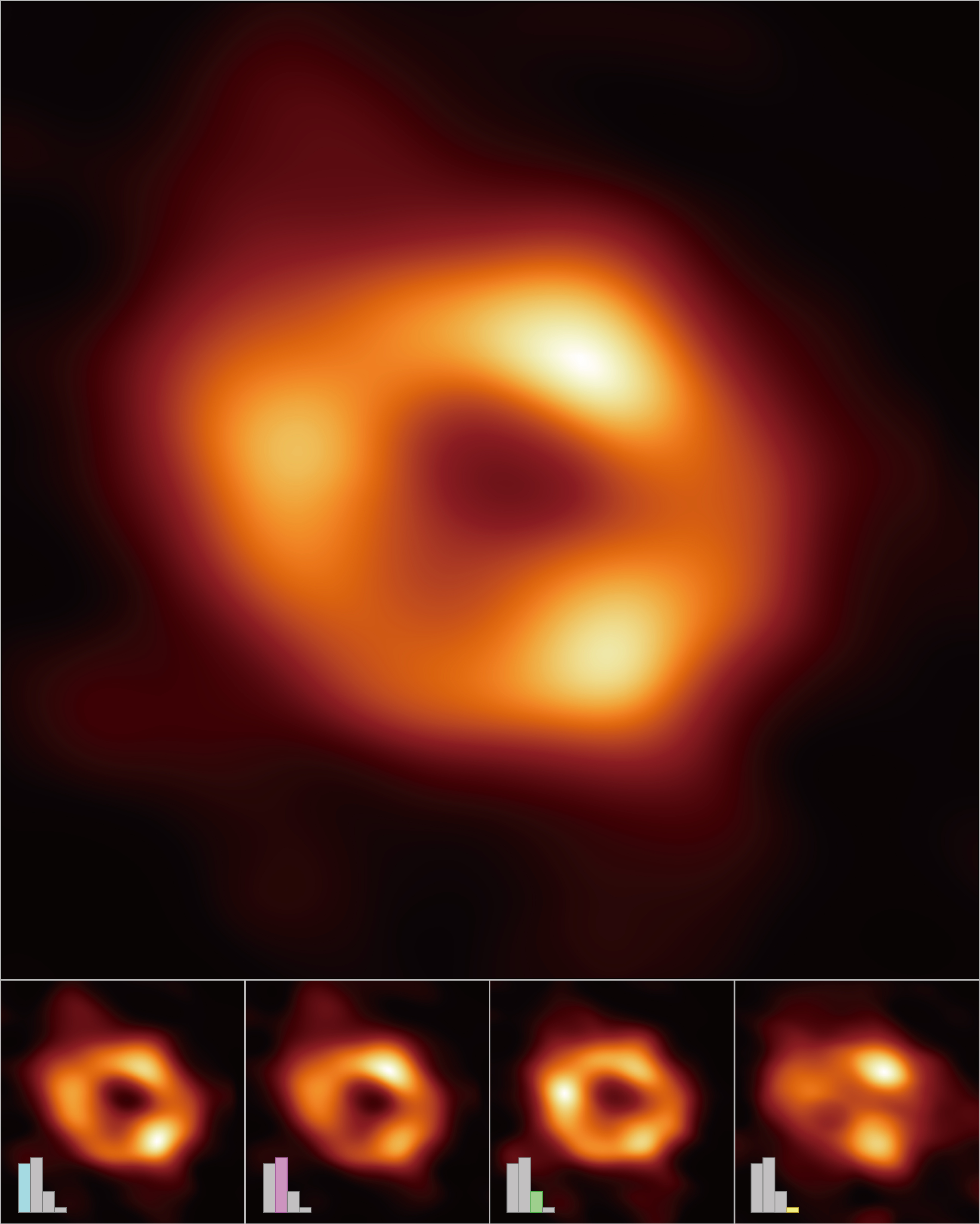 研究者たちはいて座A*周囲のガスの運動を考慮した、高度で新しいデータ処理の手法を開発しなければなりませんでした。M87は構造が安定しており画像化が容易であったため、異なる手法で導き出された全ての画像が同じように見えましたが、いて座A*に関しては状況が異なりました。今回のいて座A*の画像は、研究チームが観測データから得たさまざまな画像を平均することで得られました。この画像によって、ついに私たちが住む天の川銀河の中心に潜む大質量天体の姿が初めて明らかになりました。